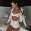 2024 Europeu e americano Outono malha leite seda pijamas terno cardigan camisola sem mangas roupa interior shorts senhoras casa wear