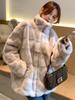 Casaco de pele de coelho imitação de pele inverno 2024 novo gola alta zíper jaqueta feminina outono e inverno quadrado pelúcia top