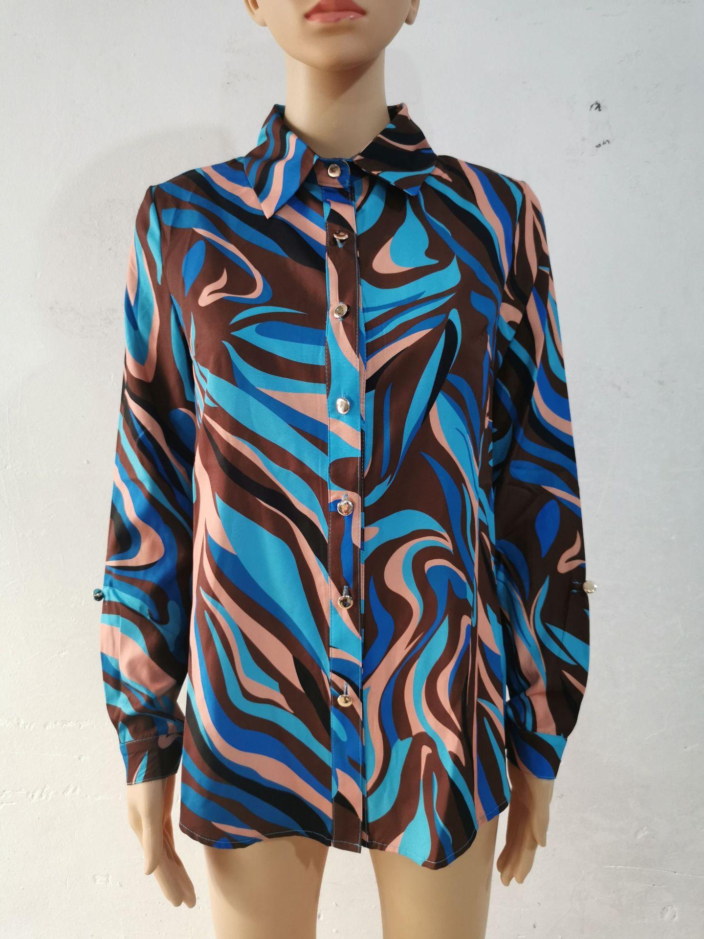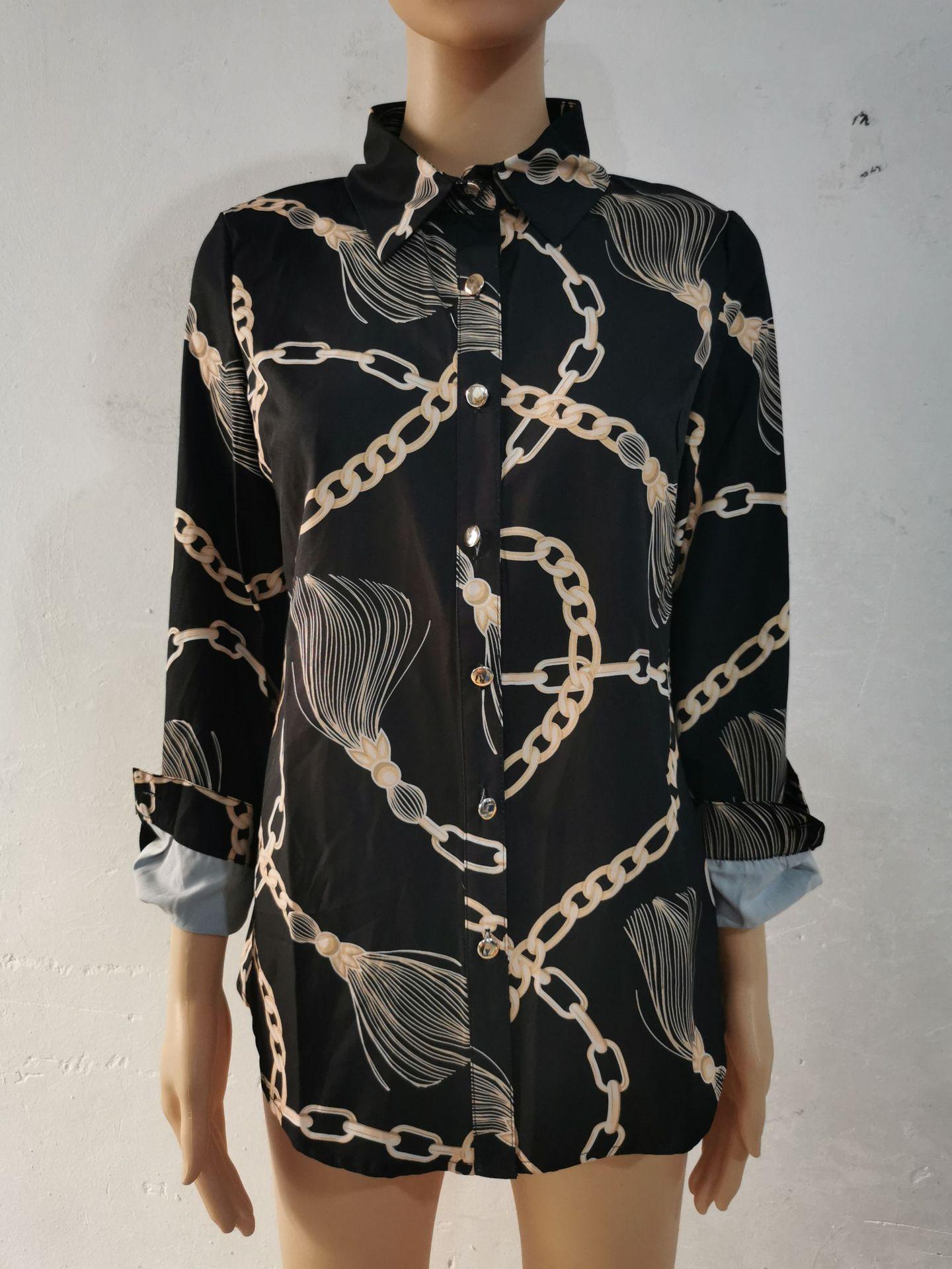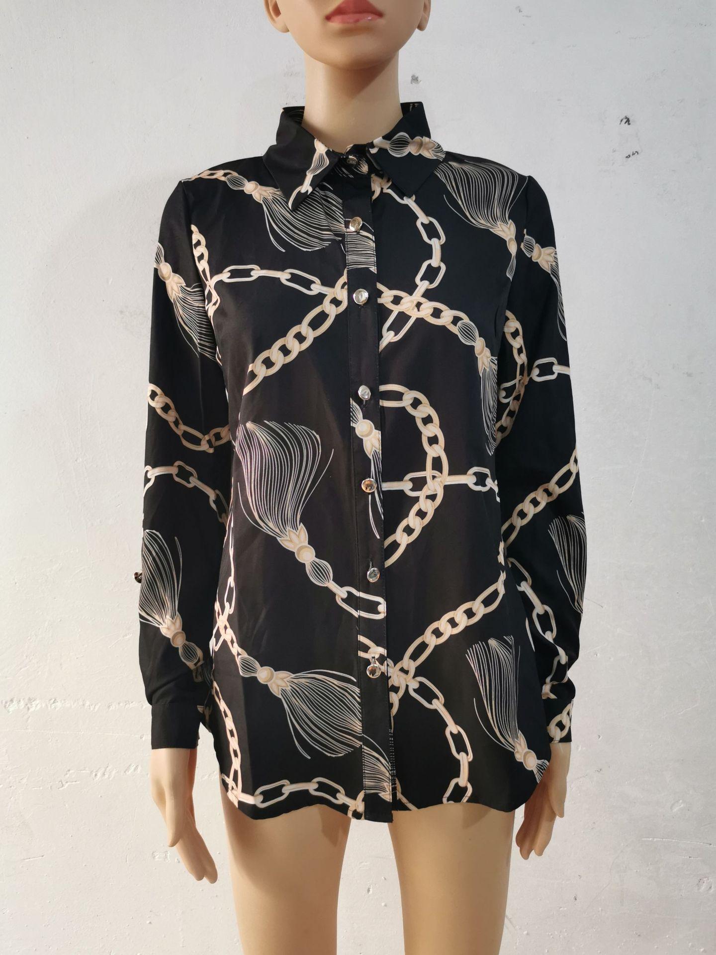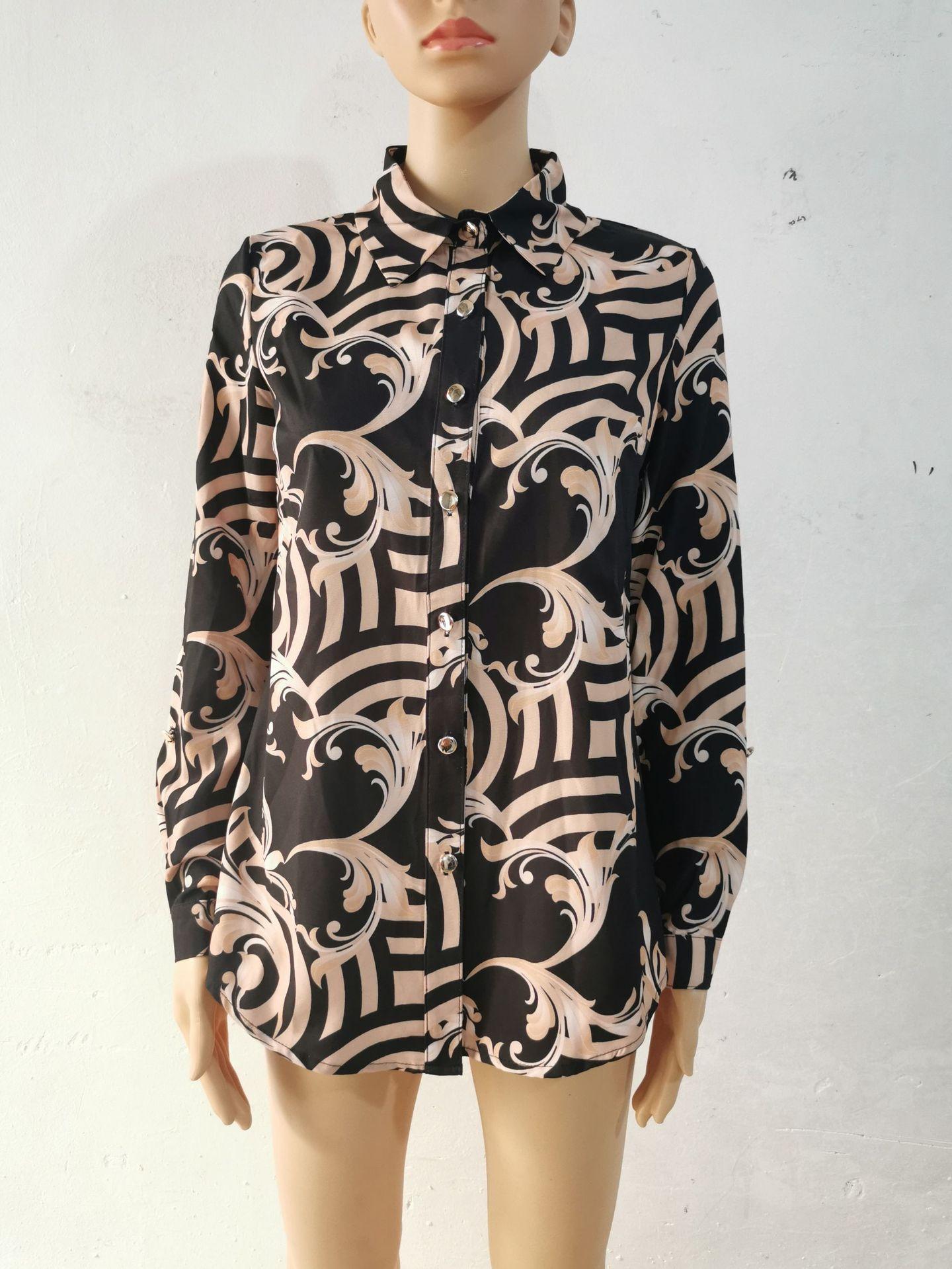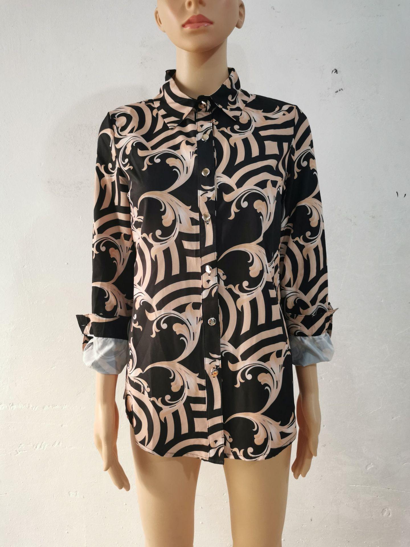 Blusas Europeias e Americanas de Marca para Mulheres Primavera e Outono Transfronteiriças Soltas Estampa Digital Abotoamento Simples Cardigã de Outono Camisas Femininas