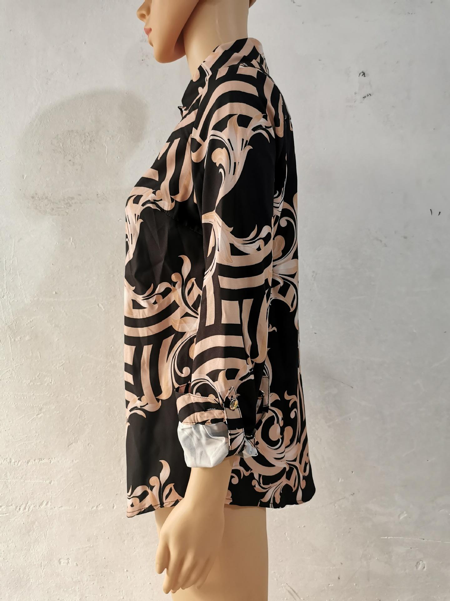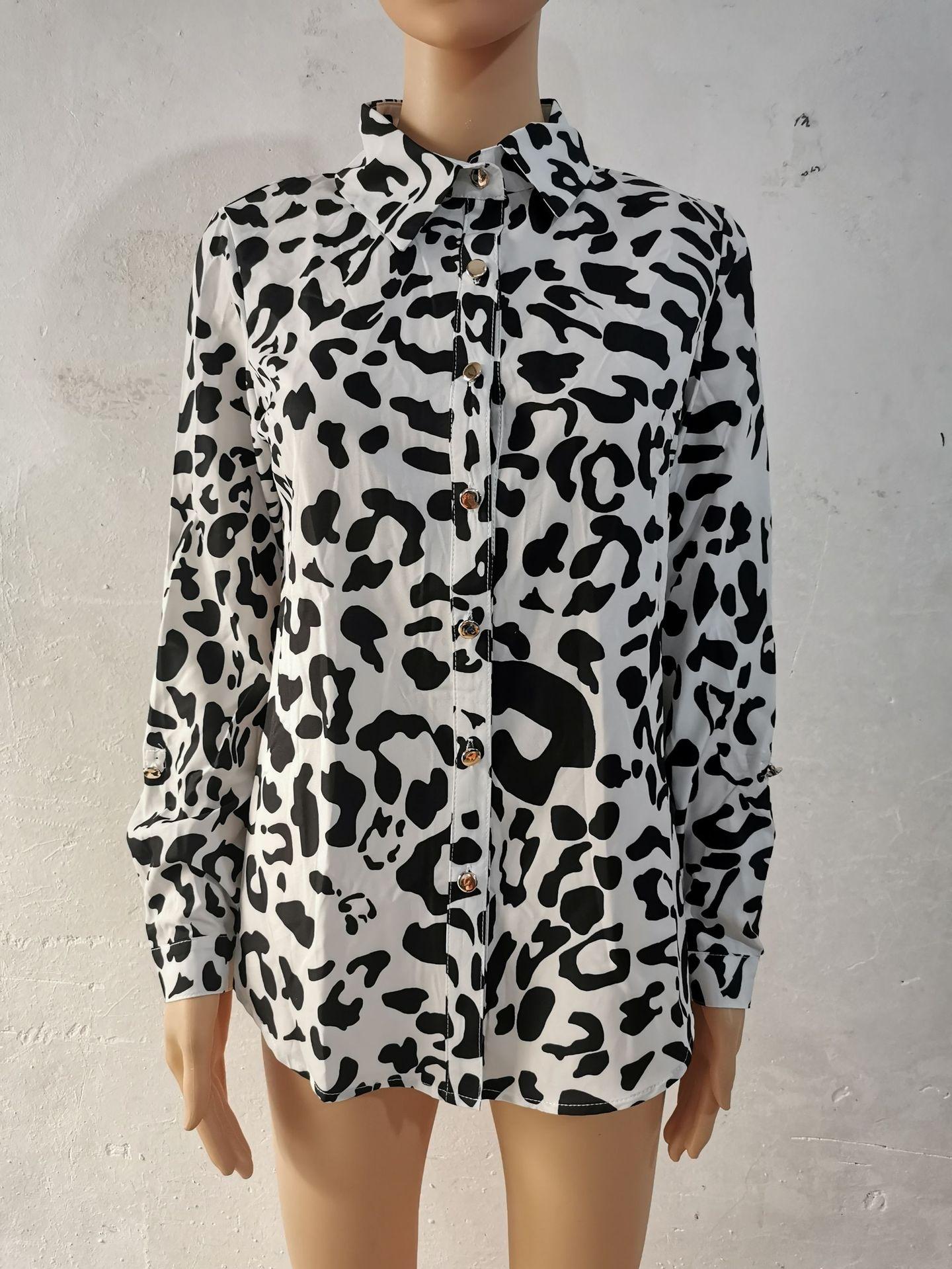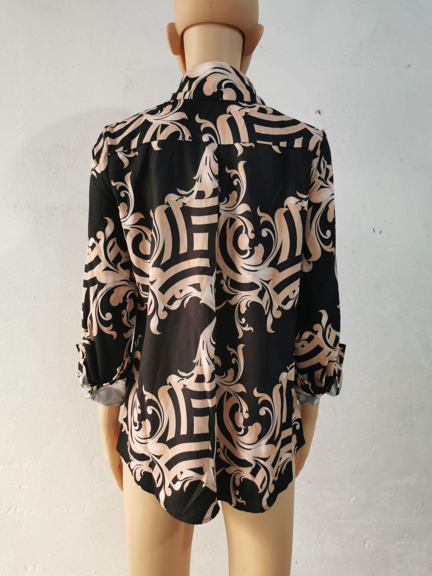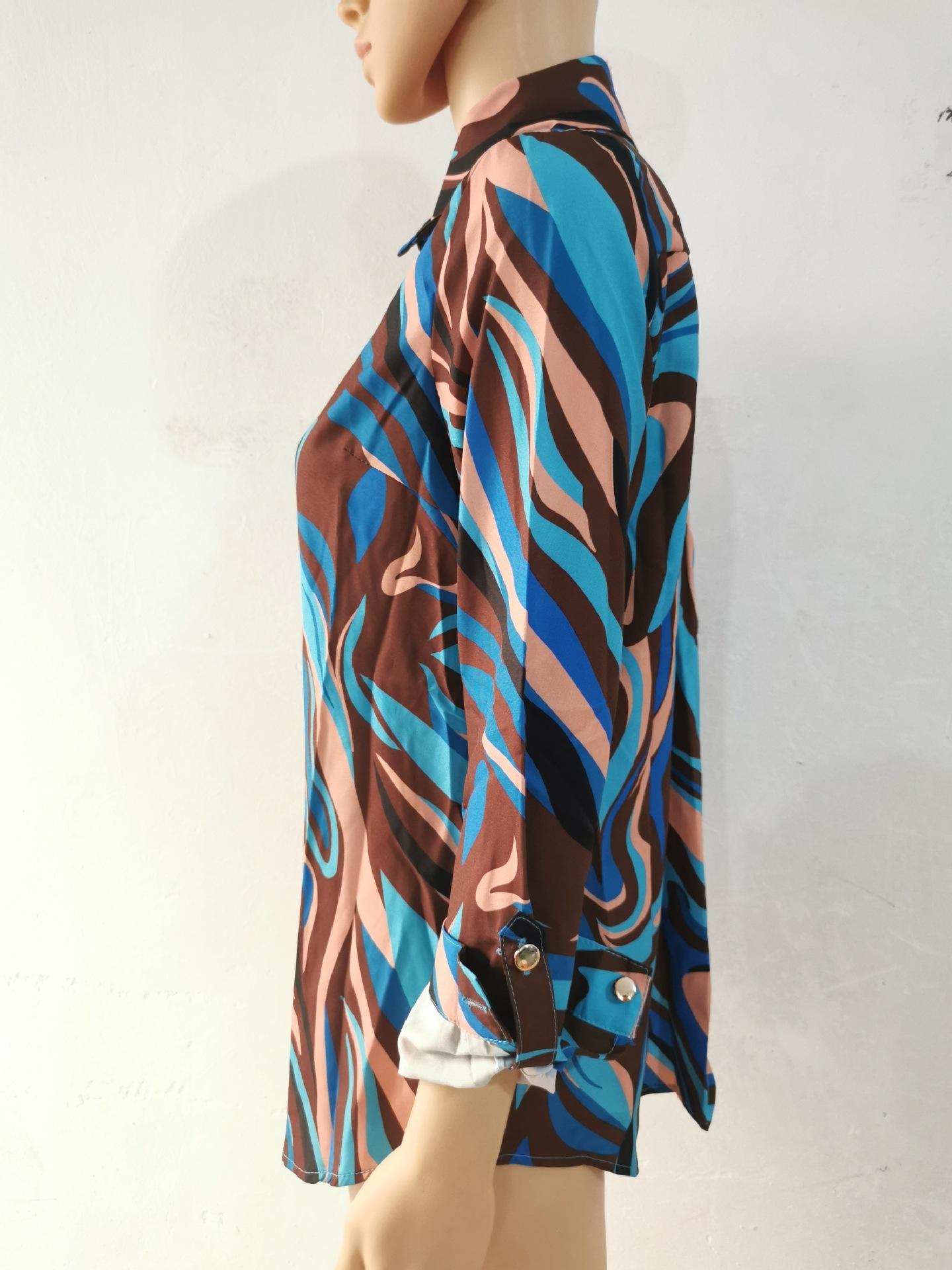 Blusas Europeias e Americanas de Marca para Mulheres Primavera e Outono Transfronteiriças Soltas Estampa Digital Abotoamento Simples Cardigã de Outono Camisas Femininas