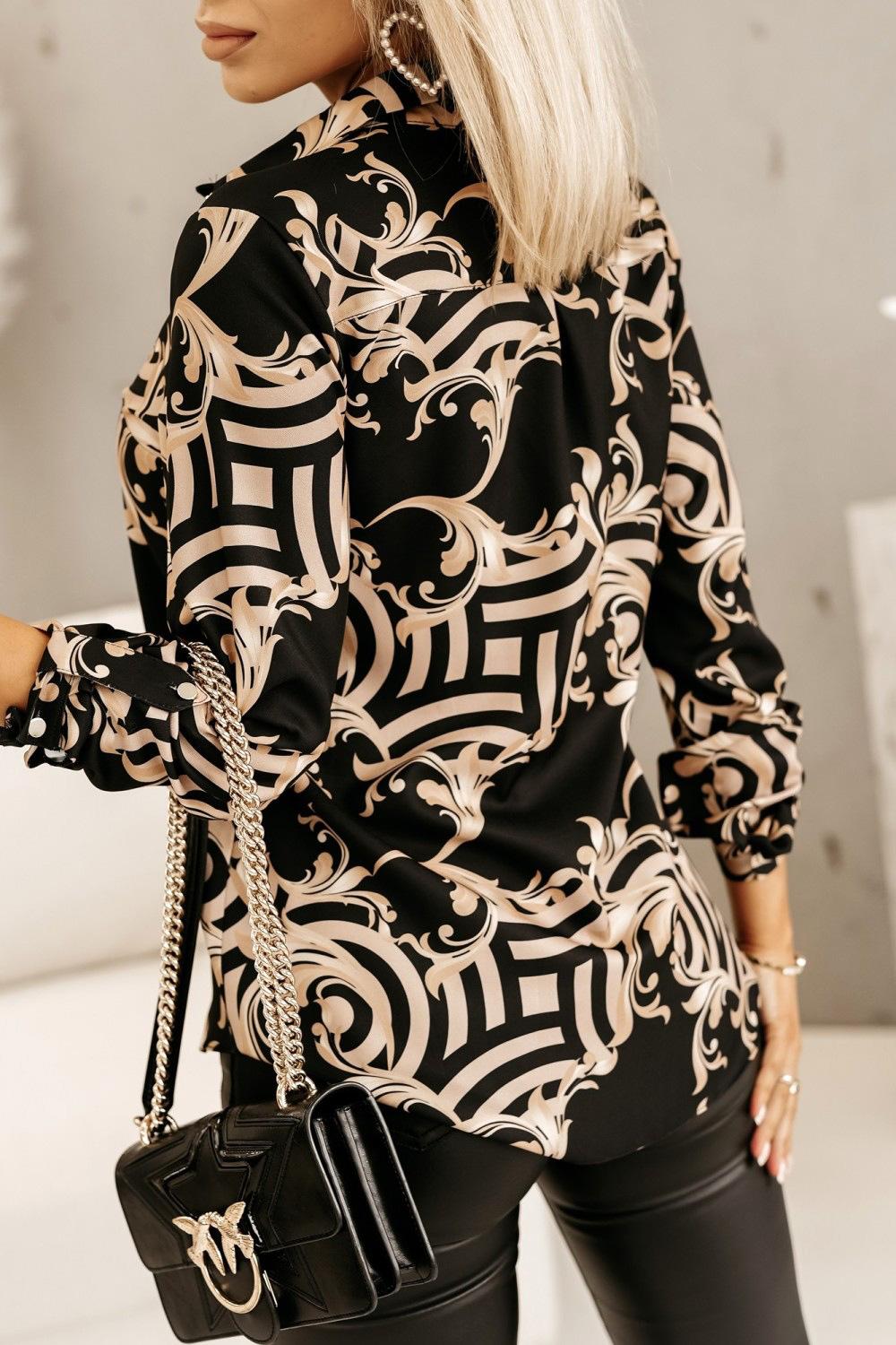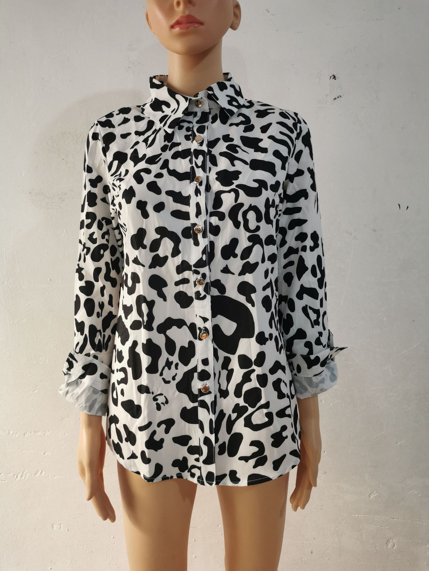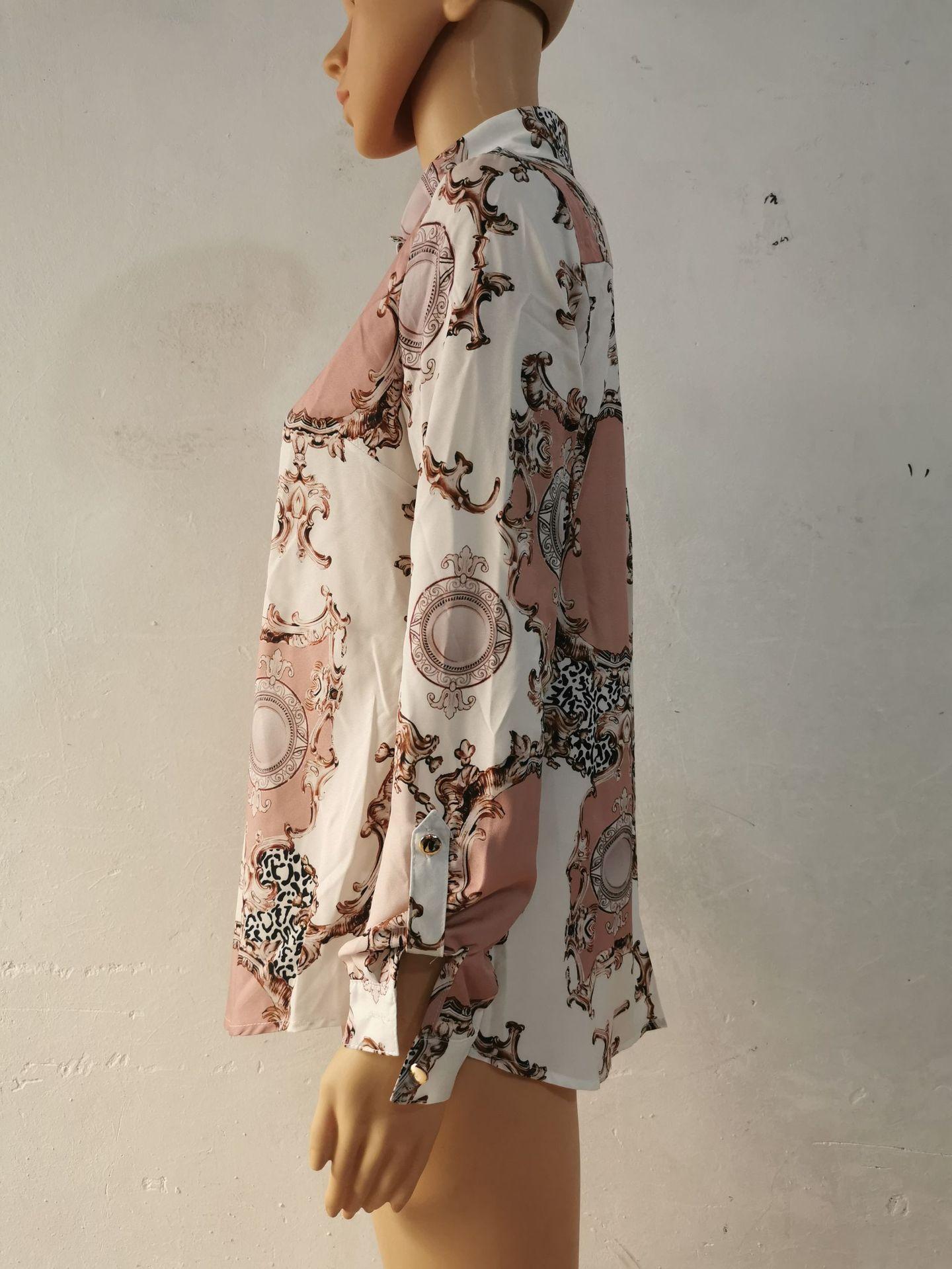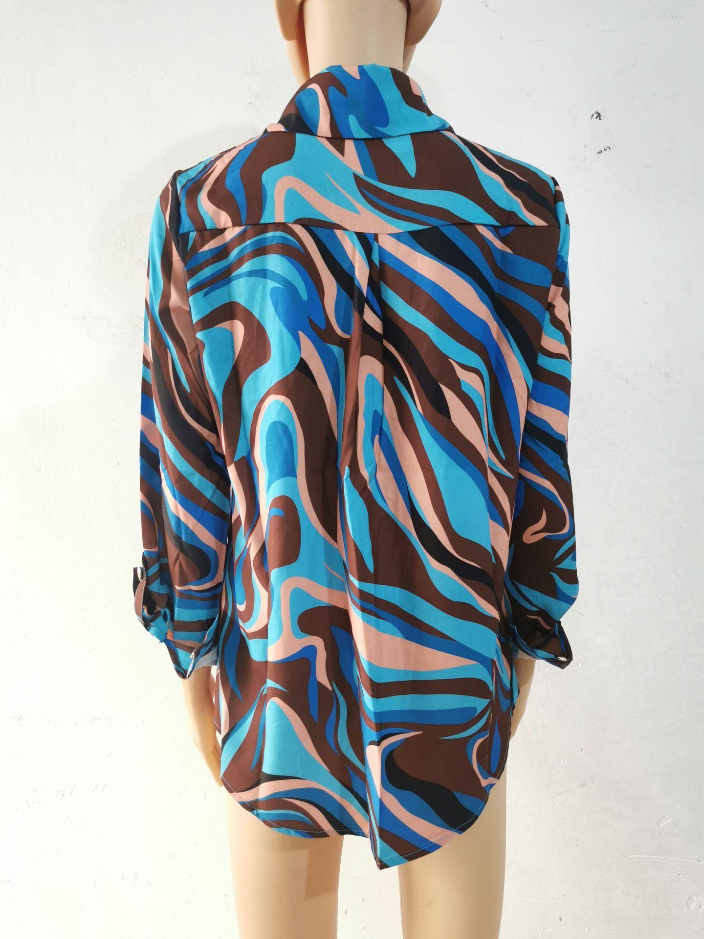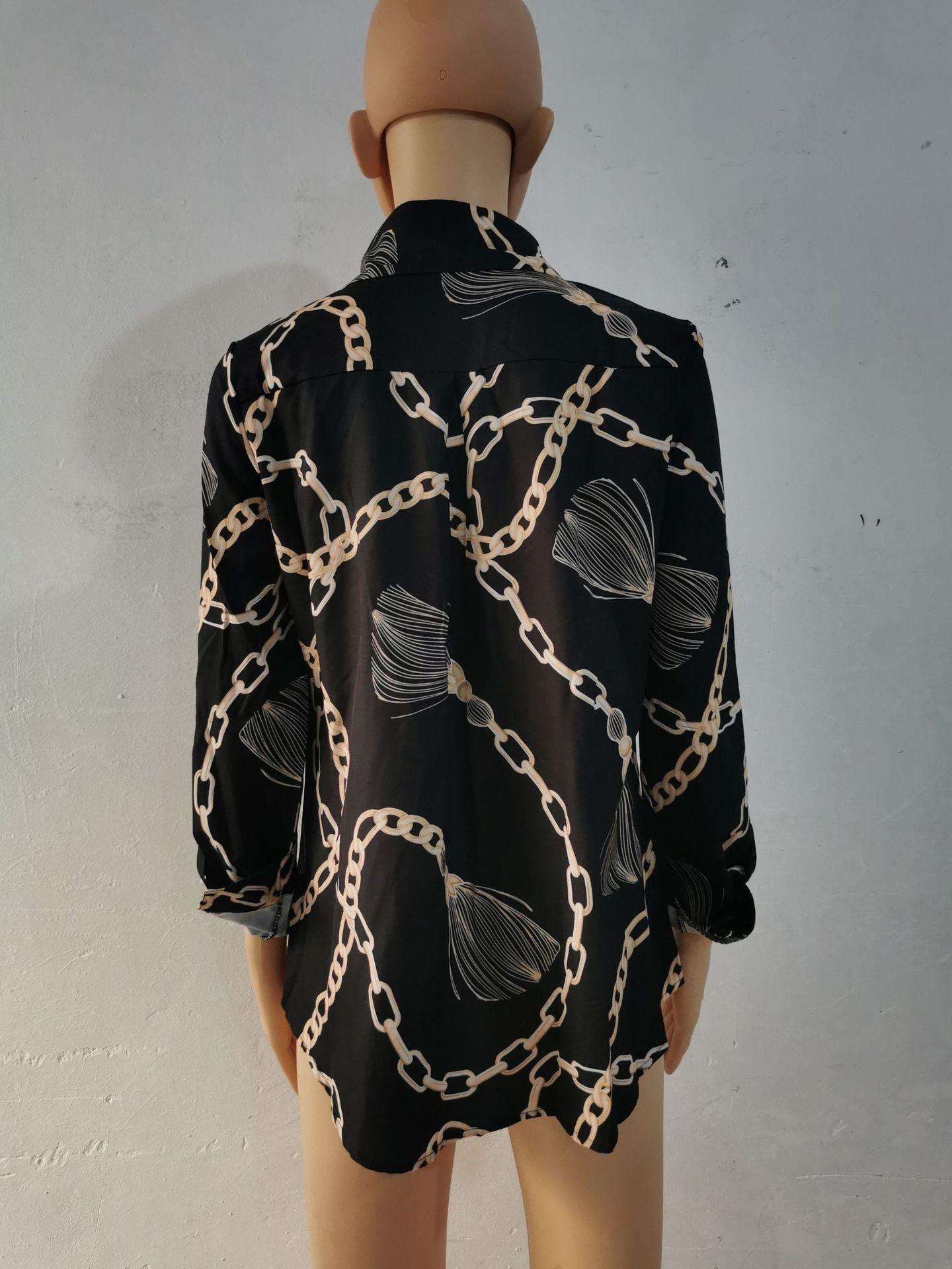 Blusas Europeias e Americanas de Marca para Mulheres Primavera e Outono Transfronteiriças Soltas Estampa Digital Abotoamento Simples Cardigã de Outono Camisas Femininas