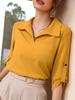 Roupa de Trabalho Empresarial de Estilo Francês Europeu e Americano Casual Solta Moda Versátil Elegante Manga Dobrada Cor Sólida Camisa Feminina para Trabalho