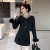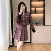 Chanel estilo xadrez casaco saia duas peças terno outono e inverno elegante alta qualidade veludo preto saia plissada terno