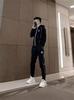 Outono Nova Moda Com Capuz Splicing Conjunto de Duas Peças Masculino Listrado Da Moda Solto Conjunto Completo de Moletom e Calça de Moletom Terno