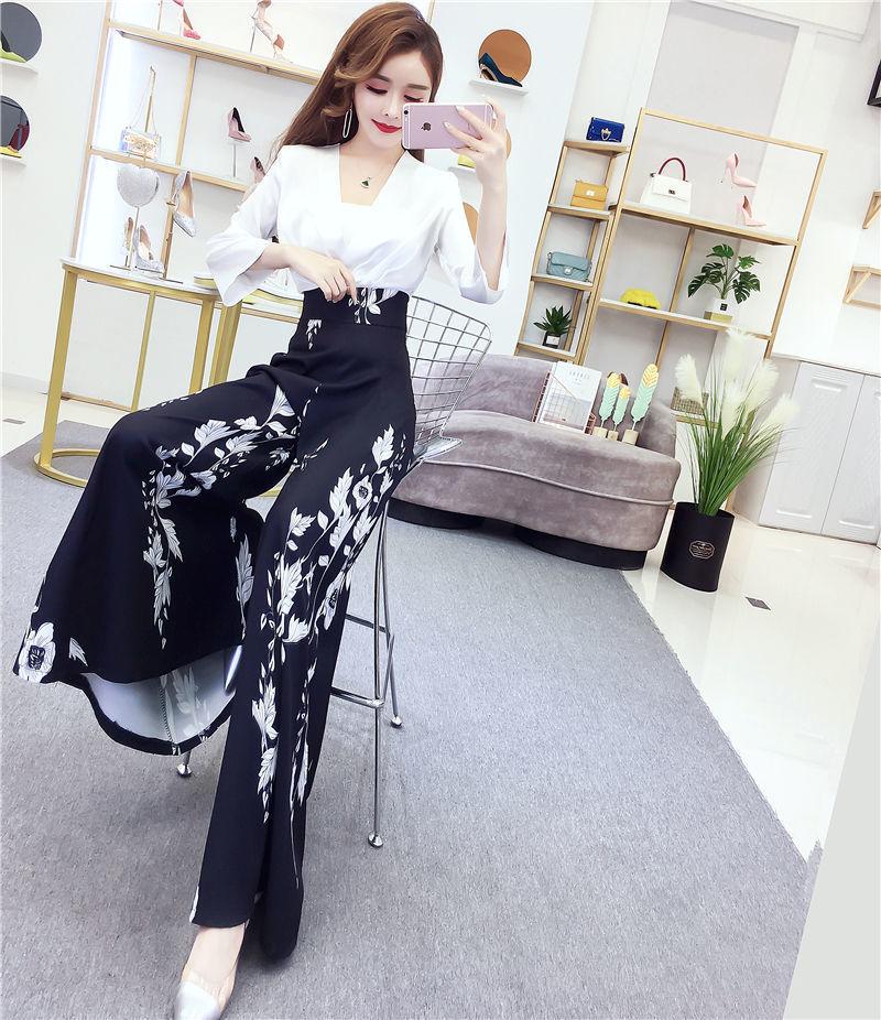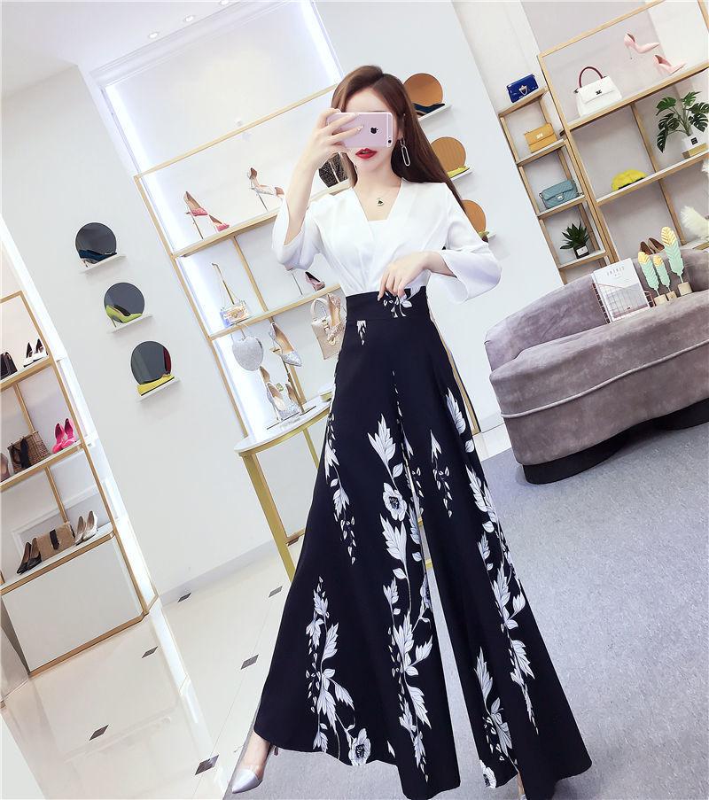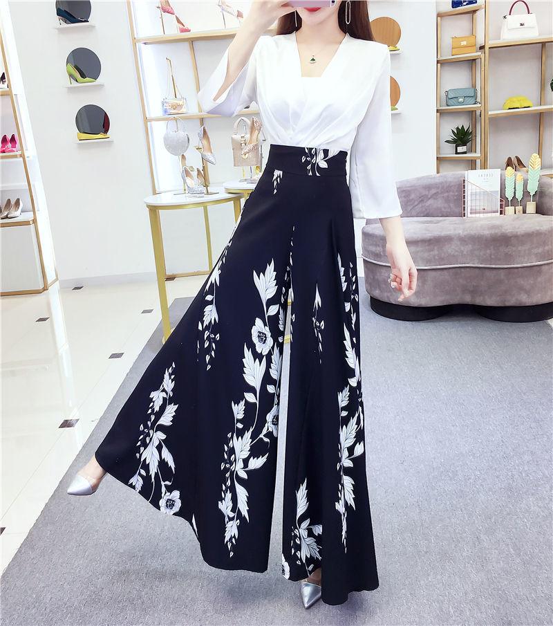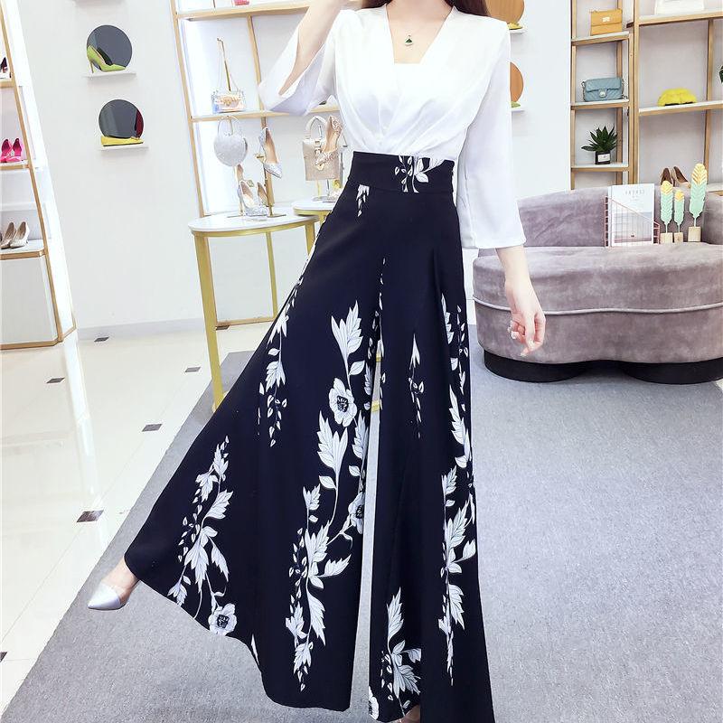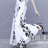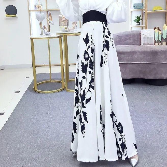 [14000 pessoas] 2024 verão novas calças temperamento femininas cintura alta fino elástico impresso calças de perna larga
