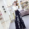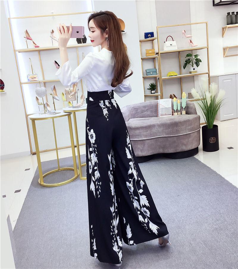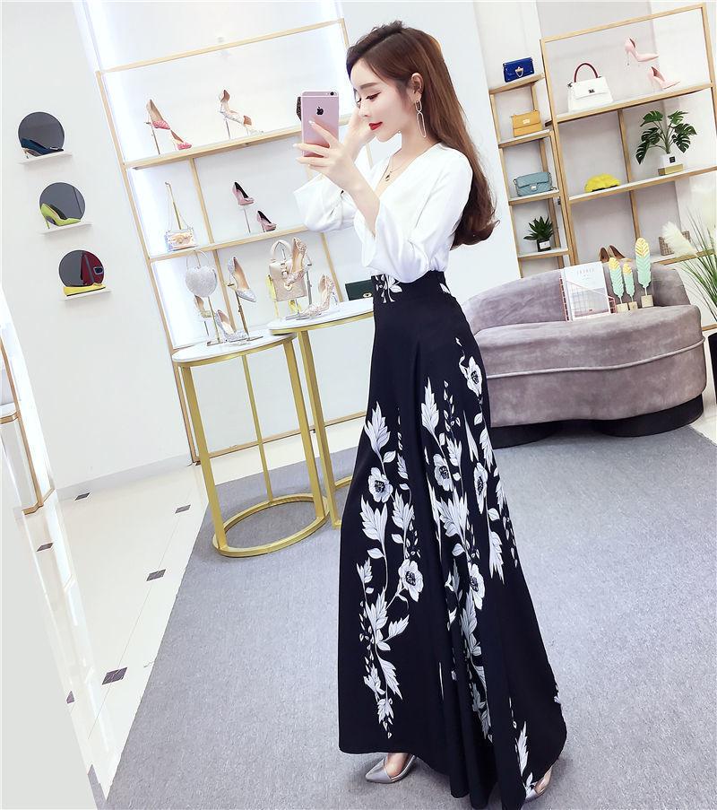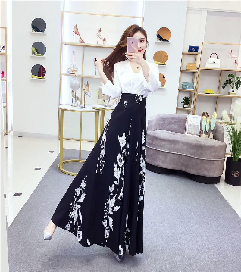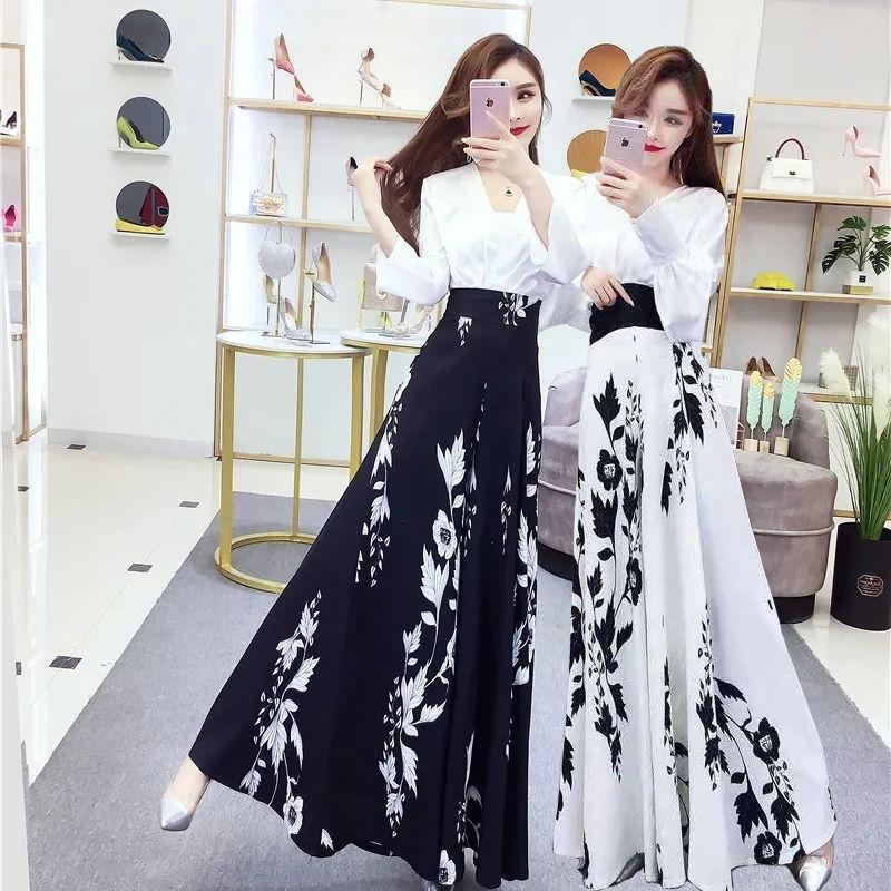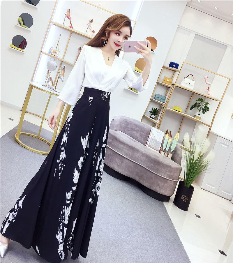 [14000 pessoas] 2024 verão novas calças temperamento femininas cintura alta fino elástico impresso calças de perna larga