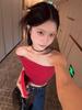 Verão 2024 Ombro Ombro Ombro Slim Slim Look Slim Camiseta Spice Girl Design Sense Navel Pure Desire Sexy Spice Girl Top