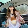 Casaco suéter de gola redonda estampado retrô estilo americano outono e inverno feminino solto casual moderno marca all-match manga comprida pulôver roupas femininas