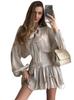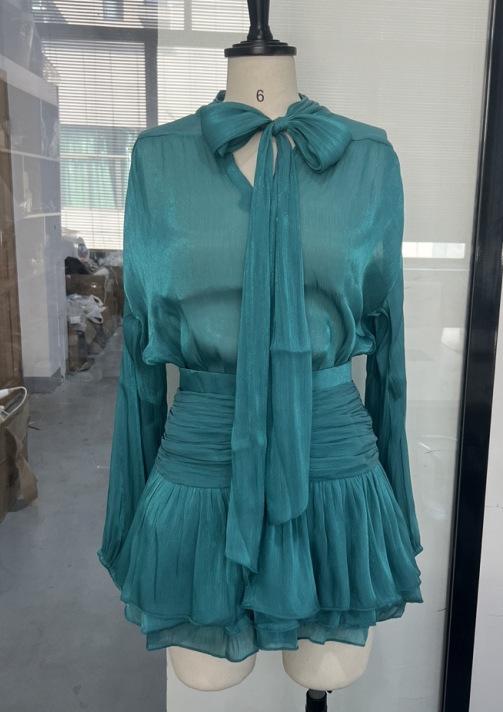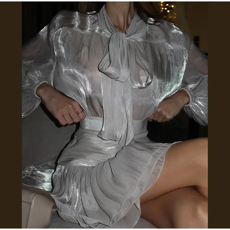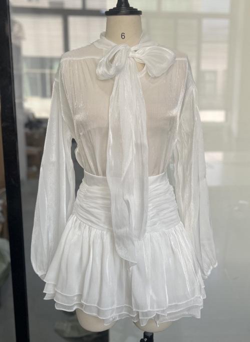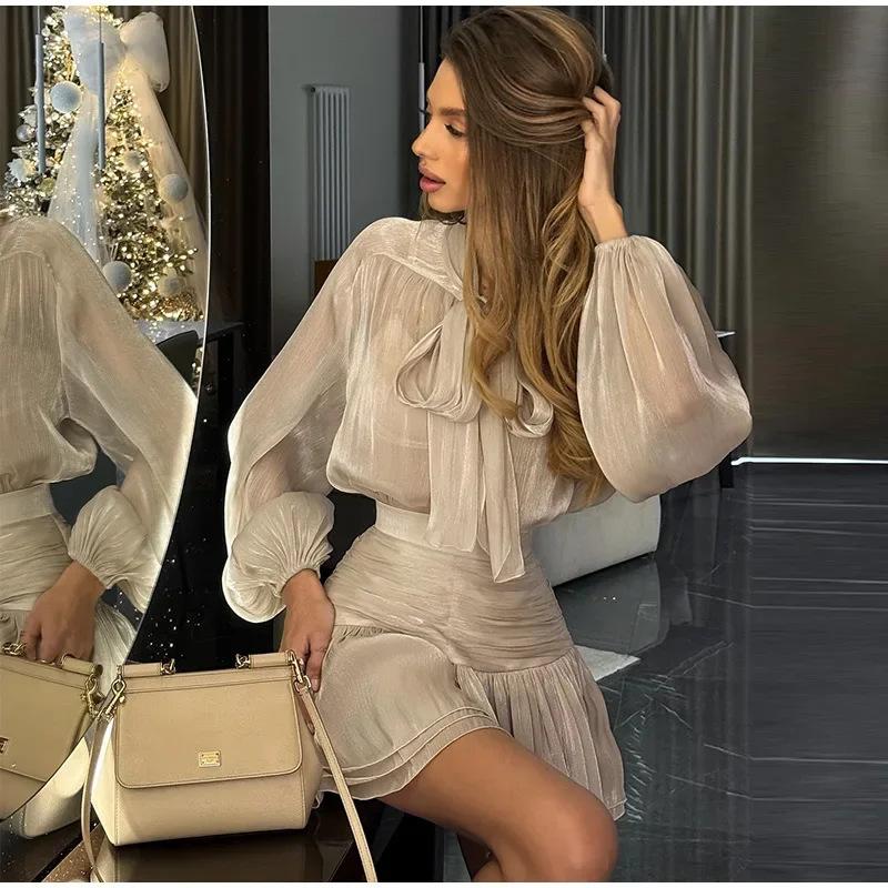 Novo Conjunto Casual Feminino Europeu e Americano Transfronteiriço 2025 Top da Moda com Laço e Cadarço Saia Plissada de Cintura Alta