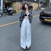 Young Orange# Tide Cool Fashion Spice Girl Calças de trabalho de perna larga casuais femininas com design solto e emagrecedor Sense Calças retas para todas as combinações