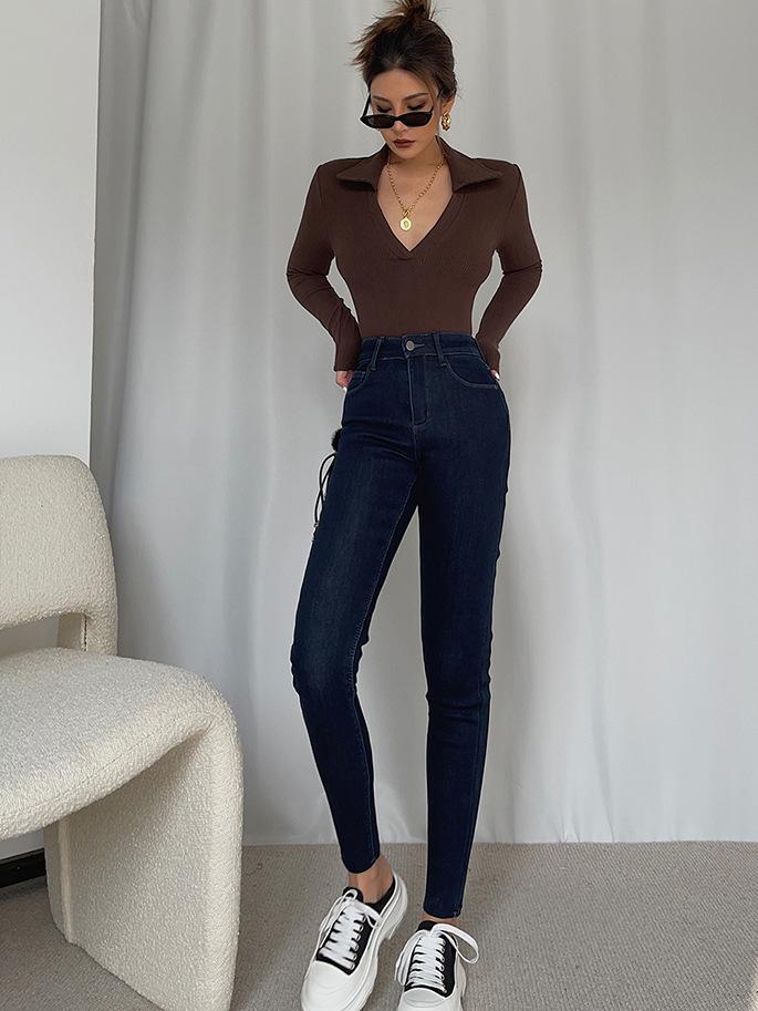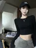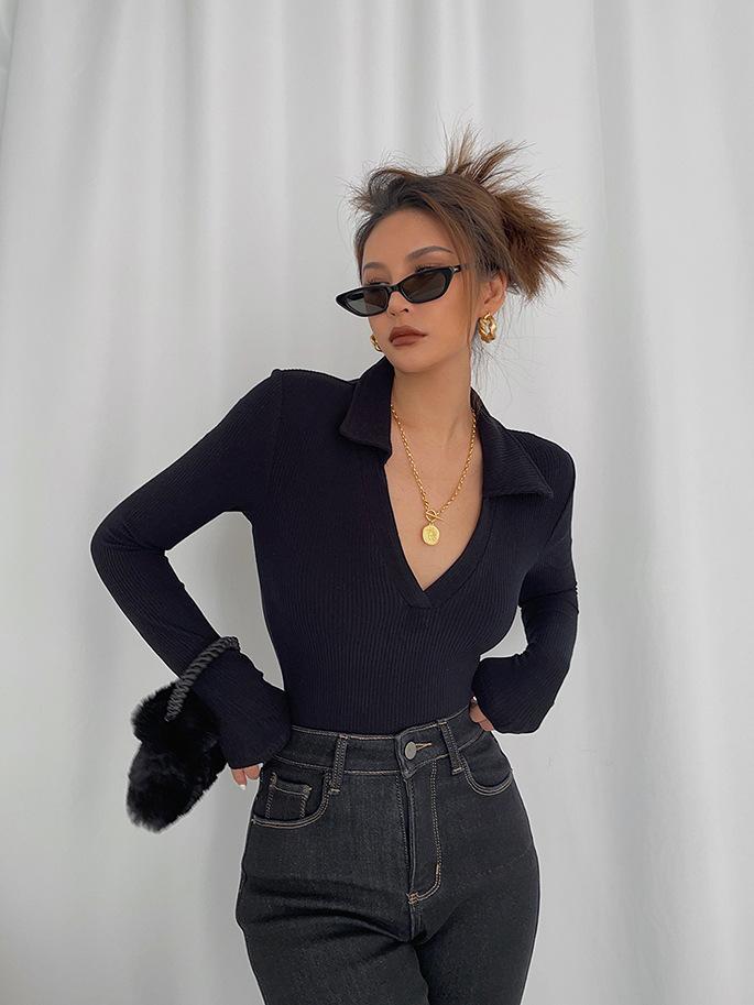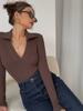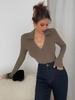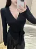 Outono Pure Desire Style Spice Girls V-neck Slim-fit Slimming Camiseta de manga comprida Nova Sexy Chic Nicho Ins Moda Top