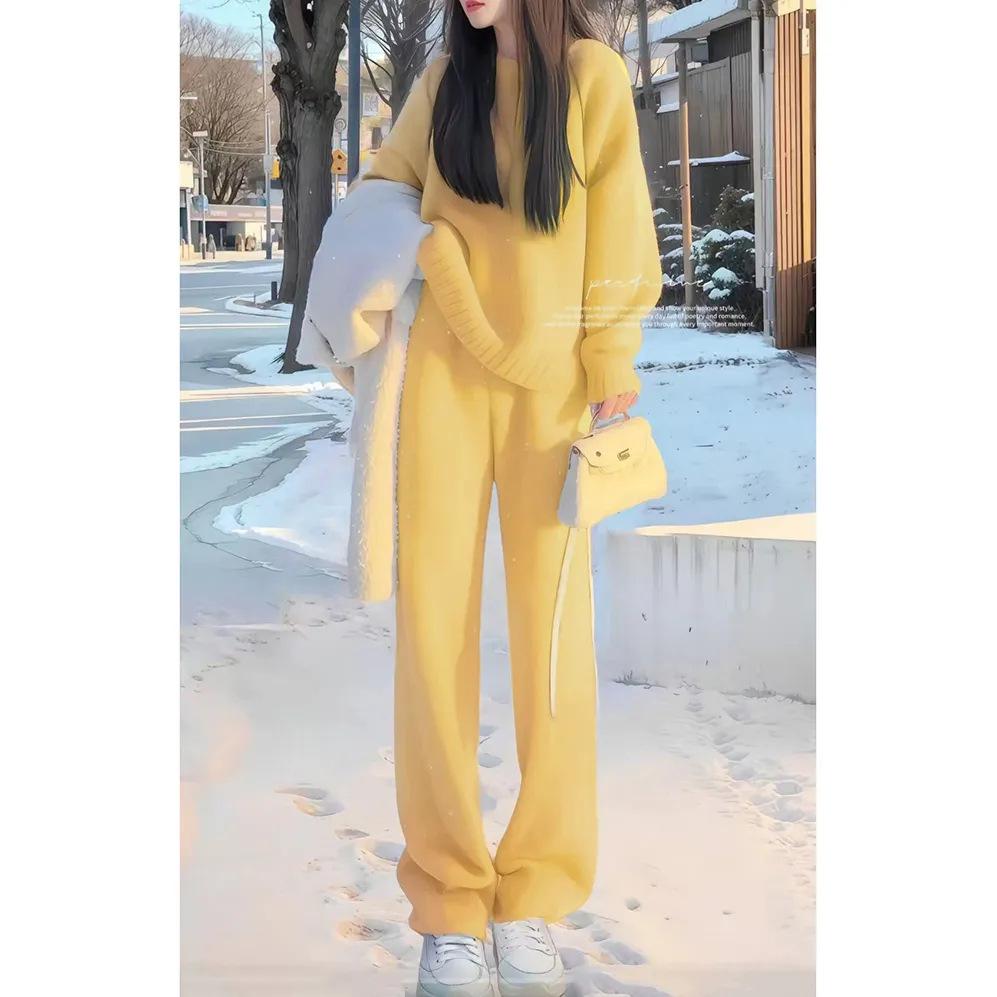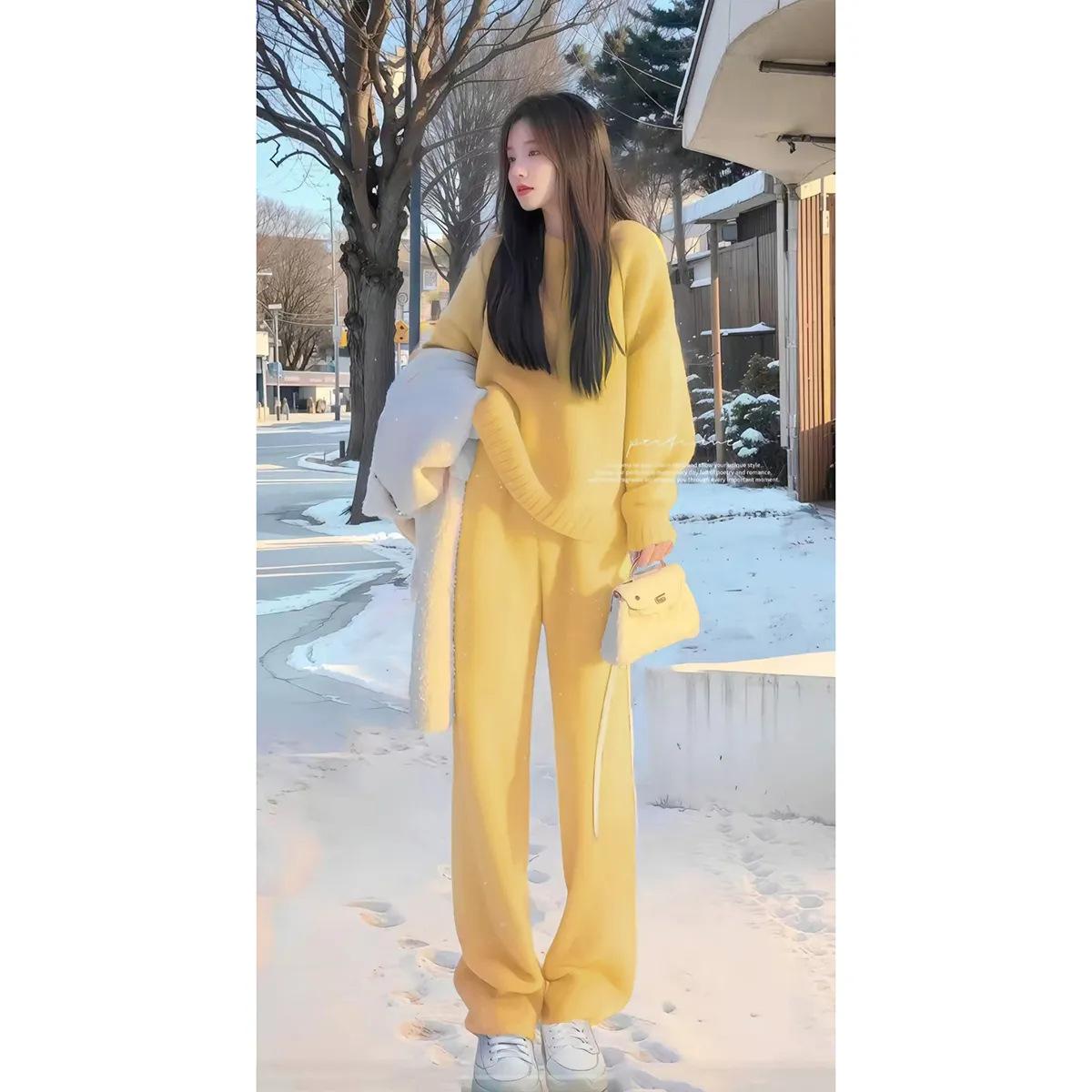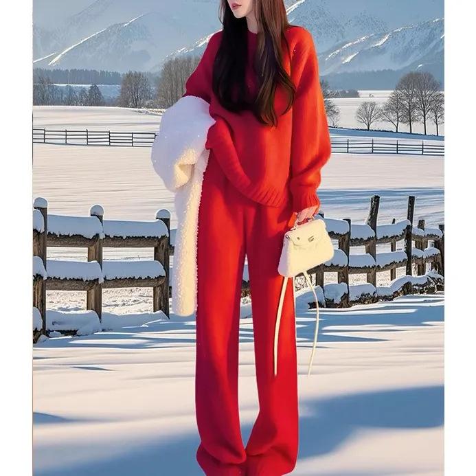 Estilo coreano com um conjunto de 2025 primavera e outono novo suéter vermelho bonito único temperamento de alta qualidade terno de malha