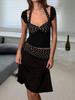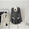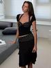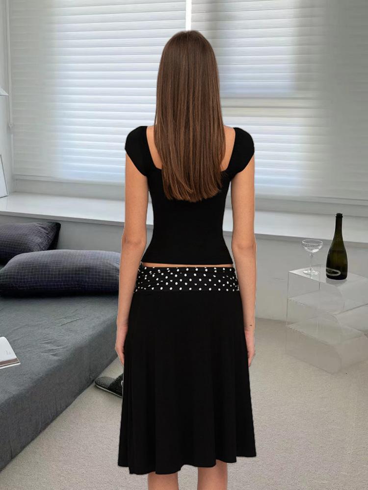Casual Pure Color Contrast Dot Conjunto de duas peças Feminino 2025 Primavera e Verão Novo Design Sense Top com Cadarço Saia Slim-fit