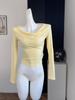 Camiseta Básica Outono Estilo Coreano Slim-fit Spice Girl Gola Balanço Manga Longa Tricotada Cor Sólida Curta Slim-fit Versátil Top Ins