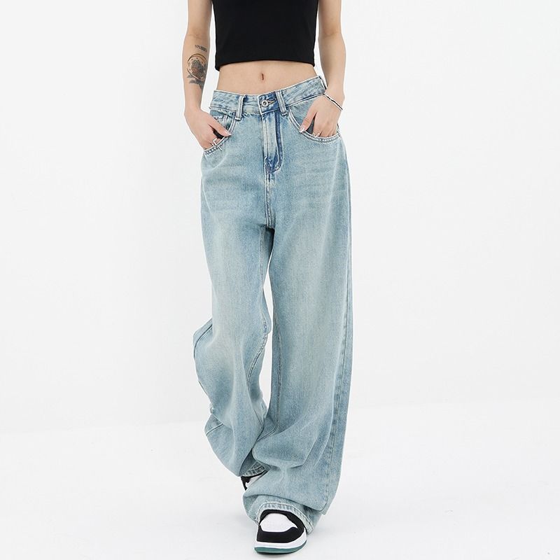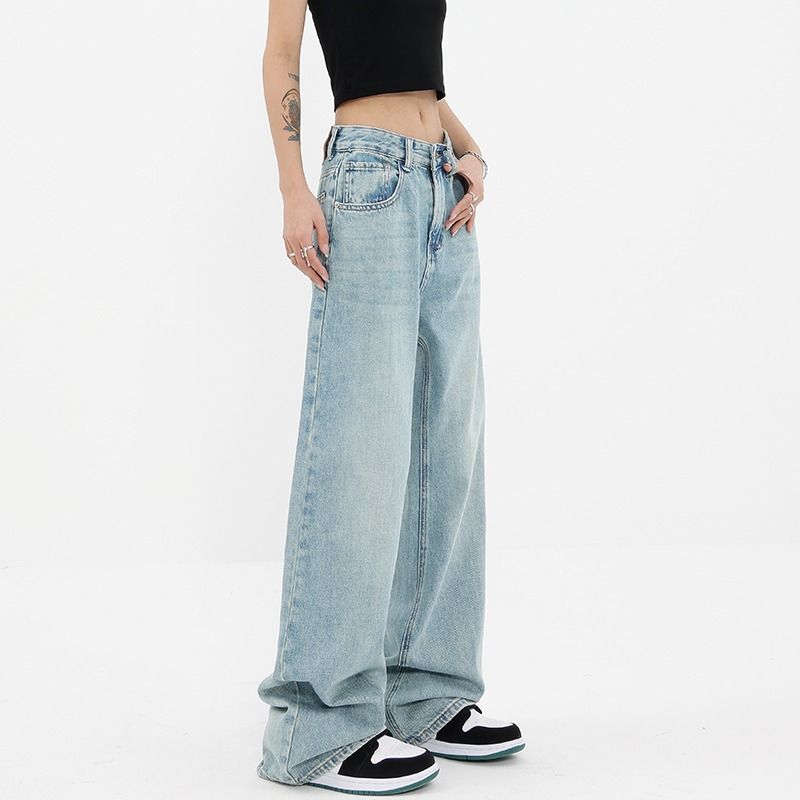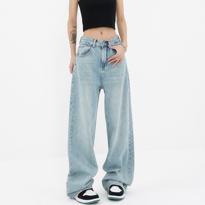 Compre Vazamento de roupas femininas, corte de lista de cauda, original, comércio exterior, primavera e verão, lavagem com água, jeans de cintura alta, perna reta, calças largas femininas no atacado no Joom.pro
