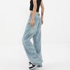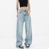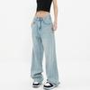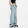 Vazamento de roupas femininas, corte de lista de cauda, original, comércio exterior, primavera e verão, lavagem com água, jeans de cintura alta, perna reta, calças largas femininas
