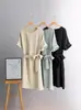 Vestido de Seda Pesada 30mm Primavera e Verão 2025 Feminino com Cadarço Saia de Seda de Amoreira Cintura Saia de Manga Curta
