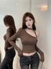 2024 Desejo Puro Estilo Spice Girl Gola Oblíqua Alça de Ombro Manga Longa Camiseta Feminina Início de Outono Ajustada Emagrecimento Versátil Top ins