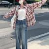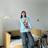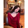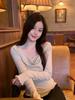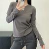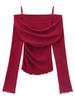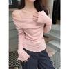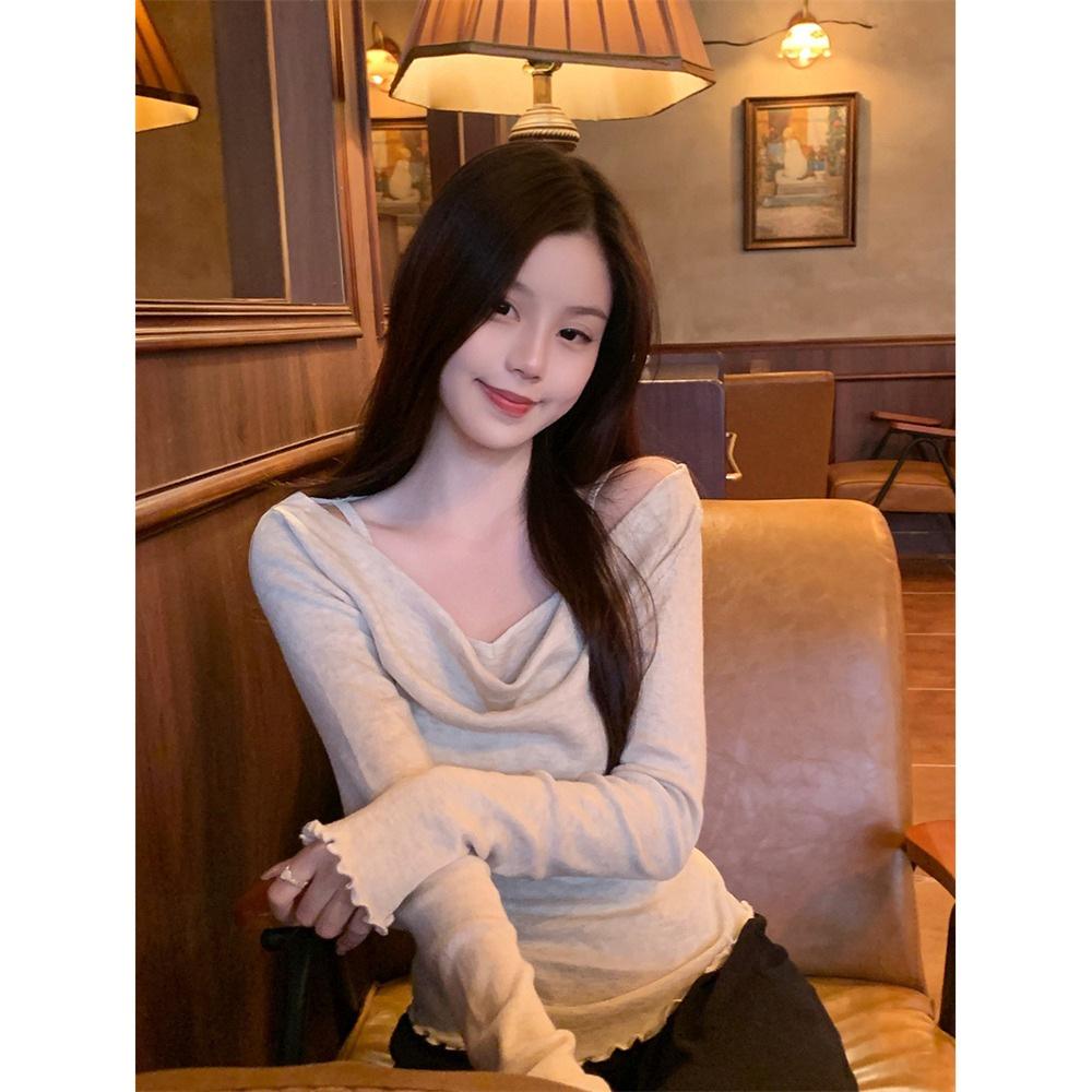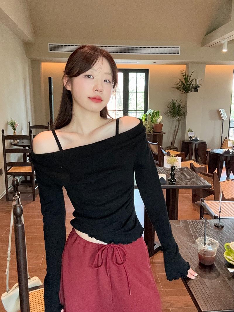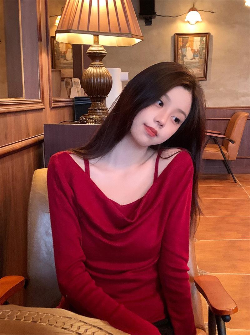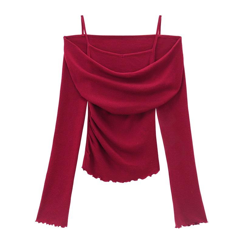 Spice Girls Sexy Falso Duas Peças Solto All-Match Moda Manga Comprida T-Shirt Nicho Ombro a Ombro Pure Desire Collar Top Ins