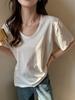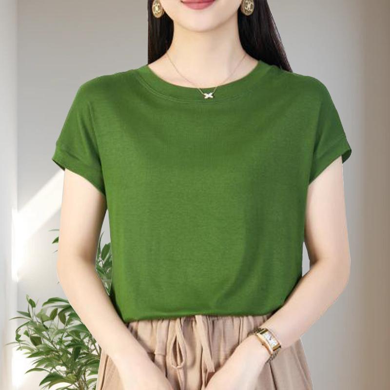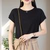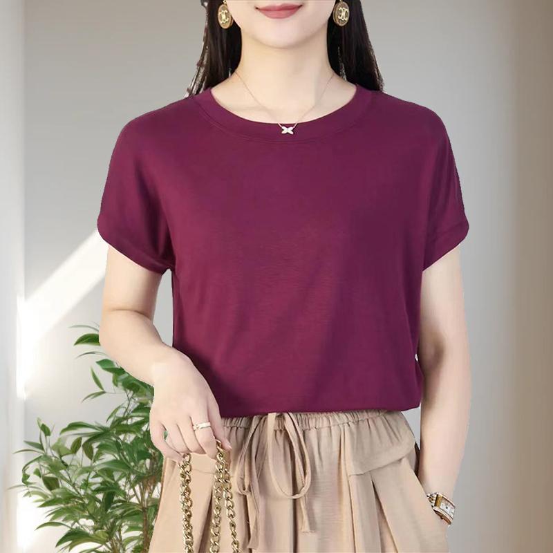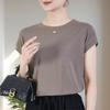 2025 Nova Camiseta Feminina de Manga Curta Manga Voadora Top Verão e Outono Solta Respirável Combinação Completa Gola Redonda Seda Gelo Manga Voadora