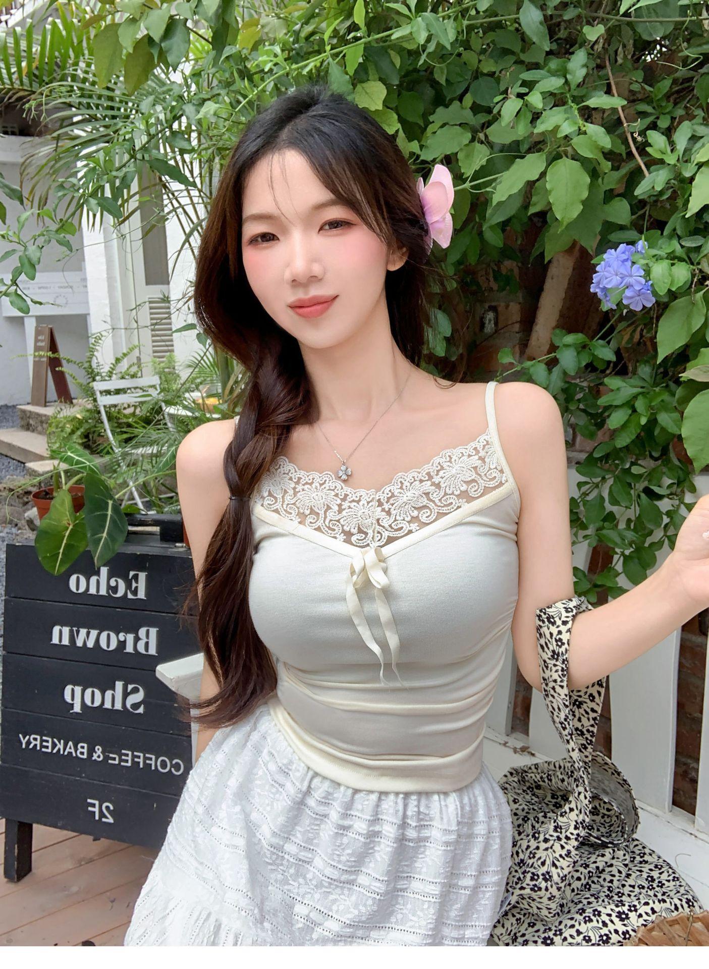 Novo estilo americano renda slim-fit slim sexy camisola 2024 arco spice girl puro desejo moda top