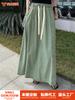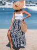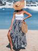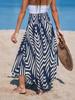 Saia feminina transfronteiriça europeia e americana, saia longa estampada com folhas, saia confortável casual estilo férias