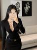 2024 Sexy Nicho Decote V Profundo Regata de Alças para Mulheres Outono Manga Longa Estilo Puro Desejo Ajuste Slim Top Ins