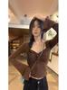 Outono Lace-up manga comprida T-shirt Design Spice Girls Slim-fit Slimming Sexy Pure Desire Estilo Nicho Moda Top Ins Mulheres