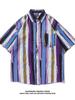 Camisa Listrada Retrô Estilo Japonês Fuiv de Manga Curta Masculina Design de Verão Marca Tendência Tendência Bonito Estilo Hong Kong Forro