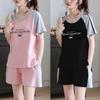 Um conjunto de shorts femininos soltos estilo coreano, elegantes, com gola redonda, manga curta, duas peças, casual, esportivo