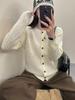 Casaco de manga comprida feminino 2025 primavera e verão novo suéter fino top falso cardigan de duas peças casual jaqueta all-match