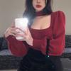 Suéter de malha interna com gola quadrada estilo francês, moda feminina, estilo Chanel, outono e inverno, sexy, slim-fit, top slim