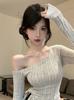 Garotas Quentes Moda Sexy Estilo Chanel Gola Inclinada Design de Ombro Camiseta Manga Longa Outono Novo Top Modelador Slim-fit