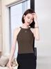 Design Sense Colete de gola redonda Colete de malha Roupa exterior feminina Casual Dividir Suéter sem mangas da moda Cone feminino