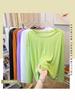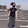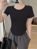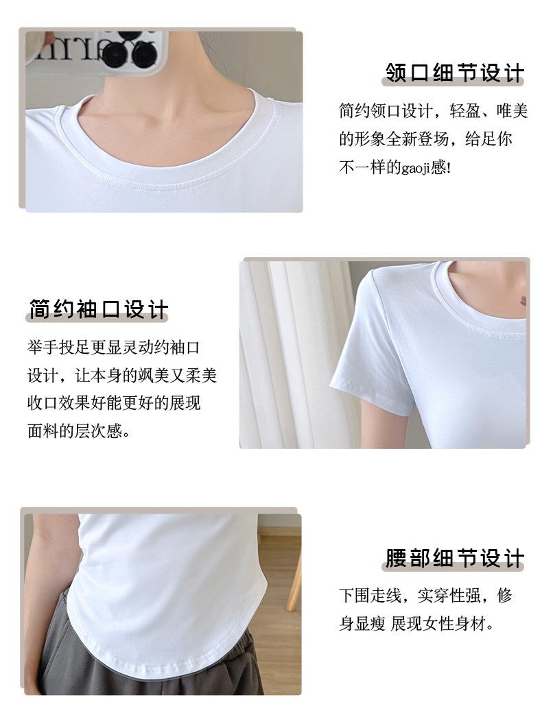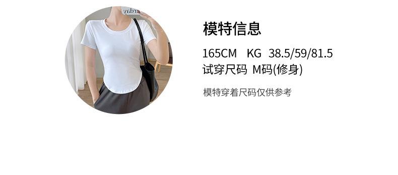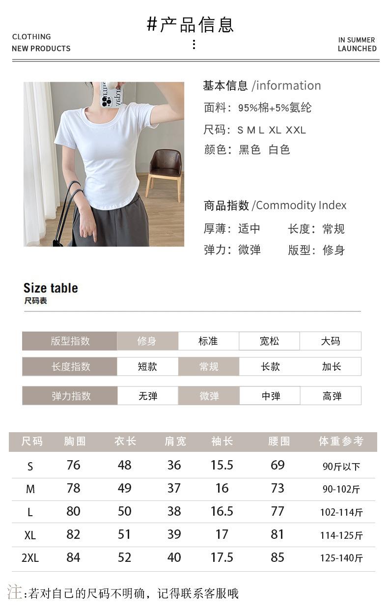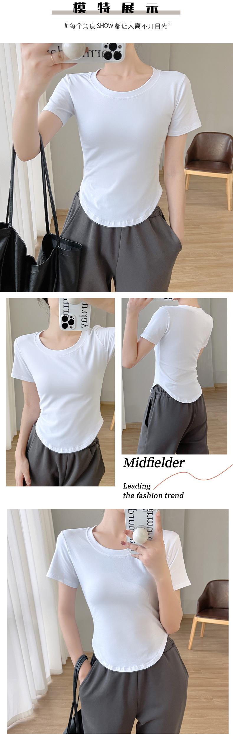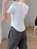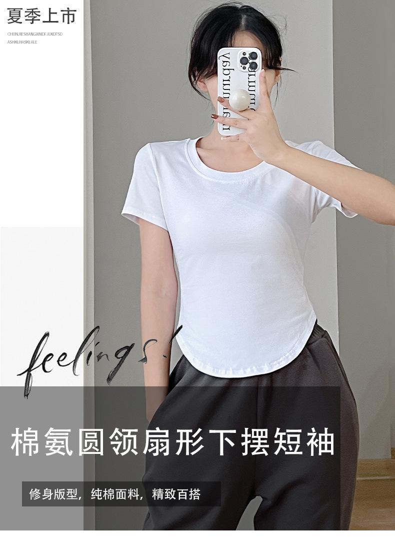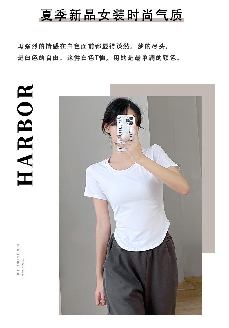 Camiseta Feminina de Algodão Branco com Gola Redonda e Bainha em Formato de Leque, Manga Curta, Novo Design Verão 2025, Versátil Top para Usar por Baixo