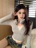 Outono 2024 Falso Duas peças Slim-fit Slimming Camiseta de manga comprida Moda Spice Girls Nicho Pure Desire Ins Top exclusivo para mulheres