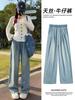 Calça Jeans Azul Tencel para Mulheres Primavera e Outono 2026 Fina de Perna Larga Solta Cintura Alta Reta Emagrecimento para Figuras Baixas