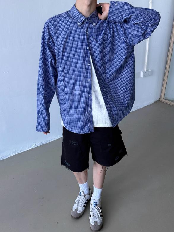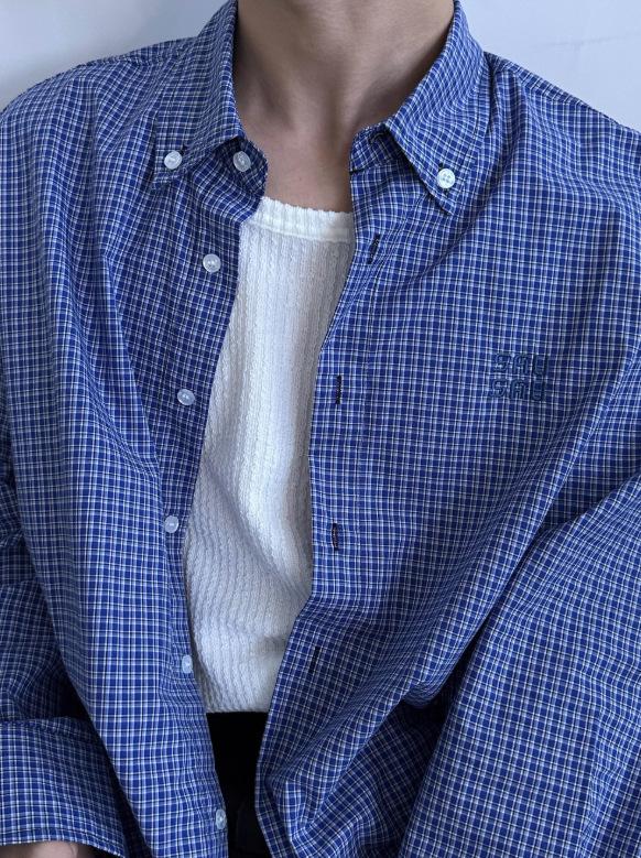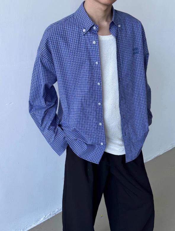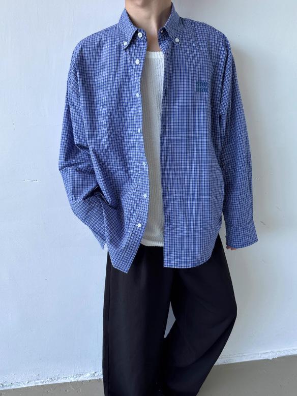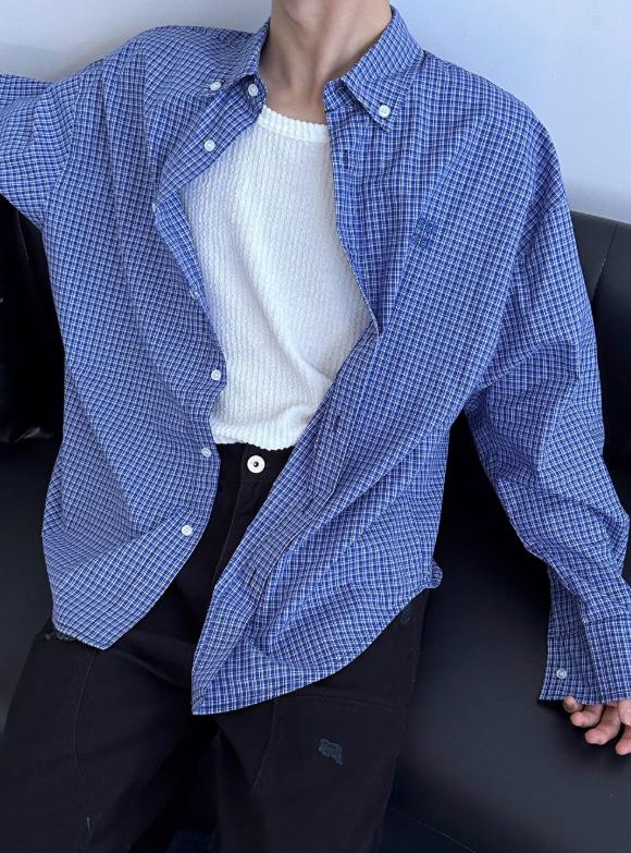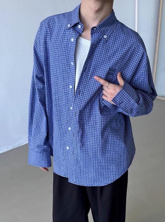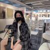 2025 Novo Estilo Coreano Atmosfera Azul Xadrez Camisa Casaco Feminino Manga Comprida Outono Camisa Solta Deslocamento Casual