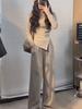 Top Justo ao Corpo, Fato da Moda de Gola Alta, Irregular 2025 Novo Versátil Elegante Primavera & Outono Reto Casual Conjunto de Duas Peças
