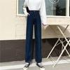 Jeans lavado vintage de cor clara perna larga feminino 2025 outono e inverno nova cintura alta solta emagrecimento calças retas