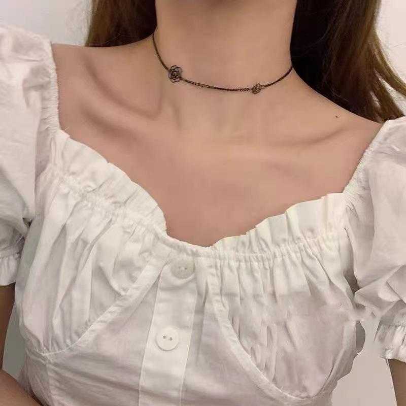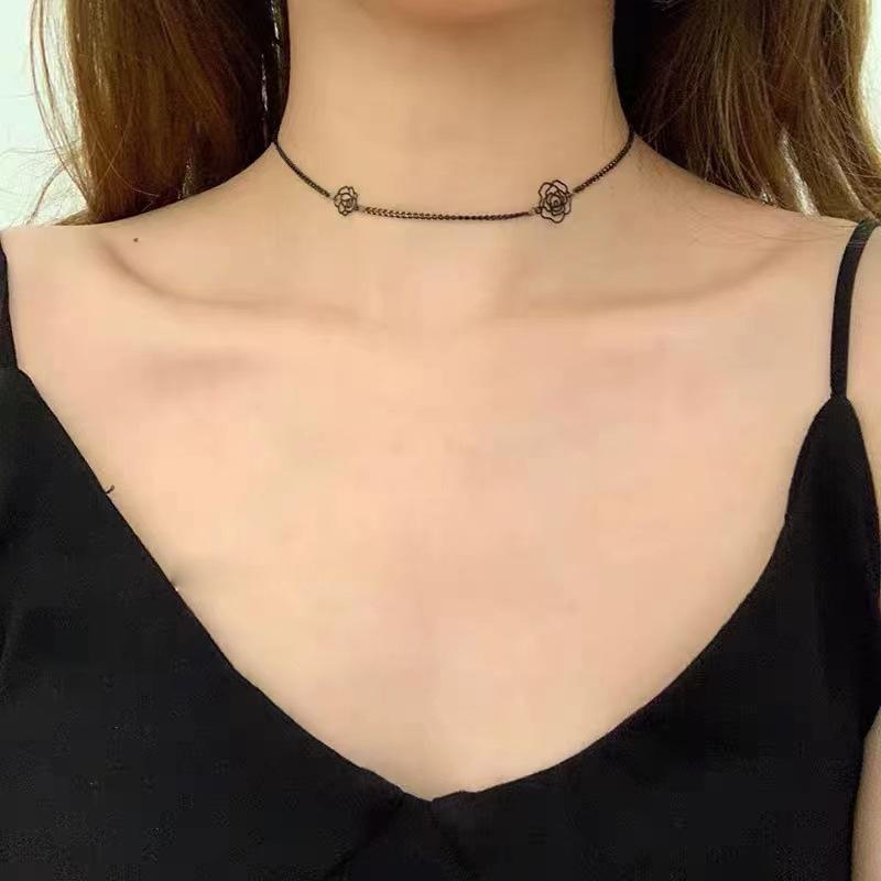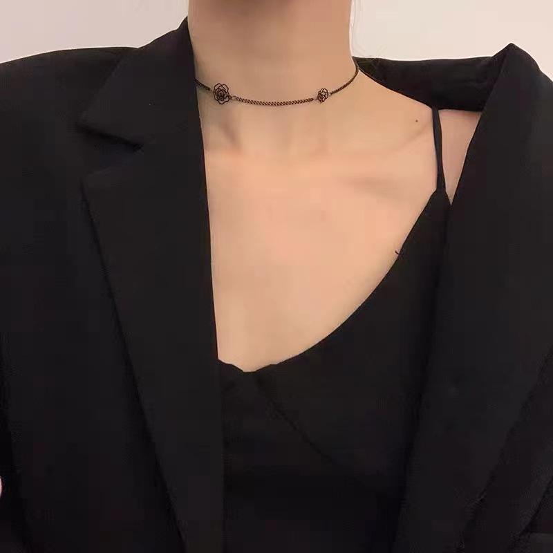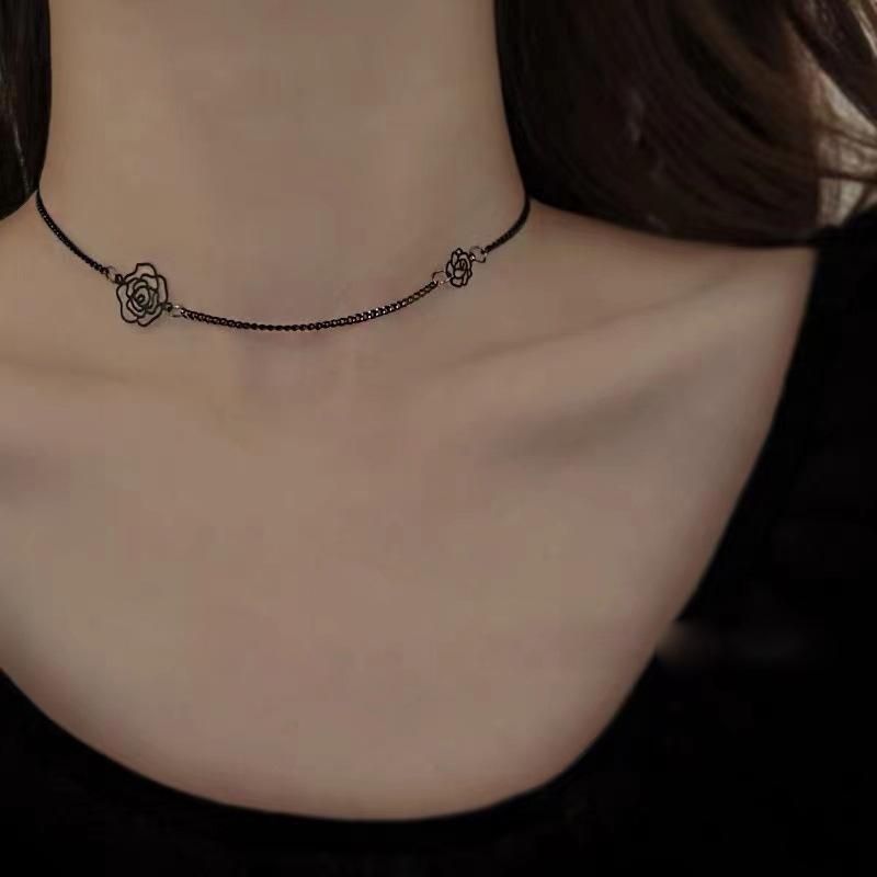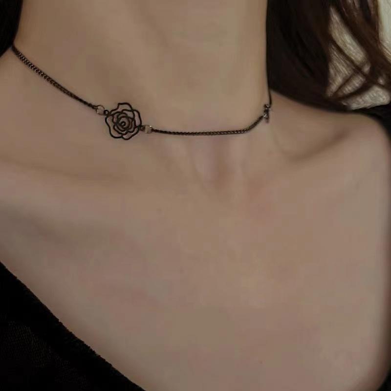 Design senso nicho colar de rosa preta feminino corrente de clavícula 2023 Novo ins colar temperamento simples e legal