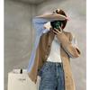 Cardigan de Tricô Azul Decote V Fresco e Rejuvenescedor para Mulheres 2025 Primavera & Outono Novo Estilo Estilo Simples Confortável e Top Amigo da Pele