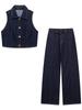 Colete jeans curto de lapela simples europeu e americano, moda primavera, slim fit, casual, top 8228024