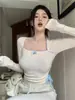 Camiseta sexy de manga comprida com renda e gola quadrada, cintura justa e slim fit, para outono, para emagrecer, Pure Desire, top para garotas quentes