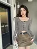 Pure Desire Style One-personagem colarinho ombro manga comprida malha camiseta para o início do outono sexy Spice Girls Slim-fit emagrecimento nicho ins top feminino