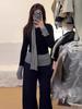 Otoño Nicho Ins Camiseta Base Interior Diseño Sensación Falso Dos Piezas Color Contraste Camiseta Manga Larga Ajustada Adelgazante Top Chica Picante