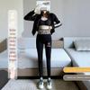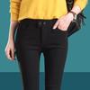 Calças femininas de primavera e outono com cintura alta elástica e leggings de algodão puro sem tamanho grande