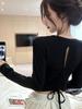Outono 2024 Novas Spice Girls Slim-fit Slimming V-neck Camiseta de manga comprida Pure Desire Style Sexy All-match Niche Top Ins