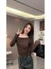 Início do Outono Novo Estilo Coreano Design Sense Casual Gola de um caractere Slim-fit Slimming Pure Desire Estilo Camiseta de manga comprida Sexy Top Ins