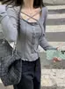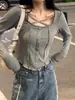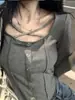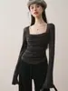 Outono Novo Gola Clavícula Slim-Fit Slim-Fit Emagrecedor Umbigo Exposto Camiseta Manga Longa Senso de Design Spice Girls Desejo Puro Top Nicho Ins